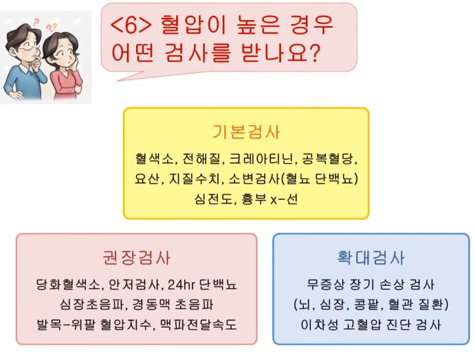 혈압이 높을 때 받는 검사: 기본검사, 권장검사, 확대검사