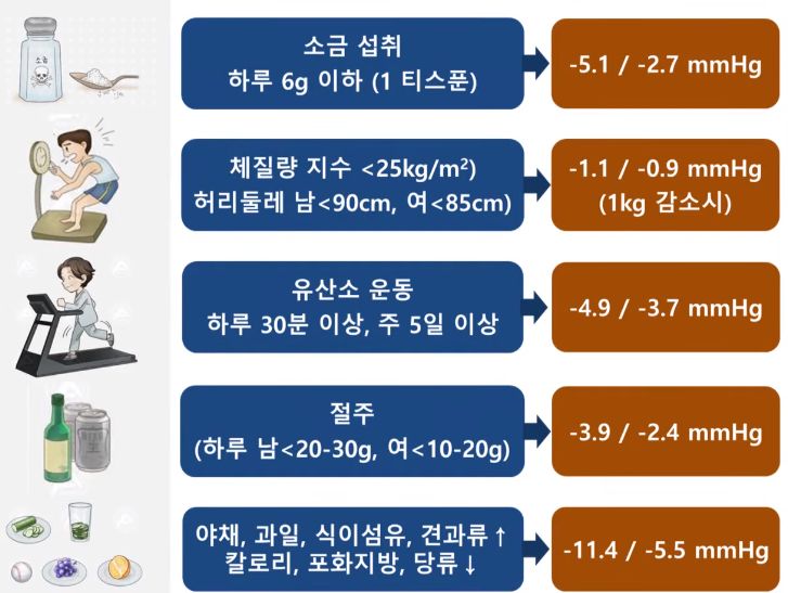 엄격한 생활요법으로 기대할 수 있는 혈압내리기 정도