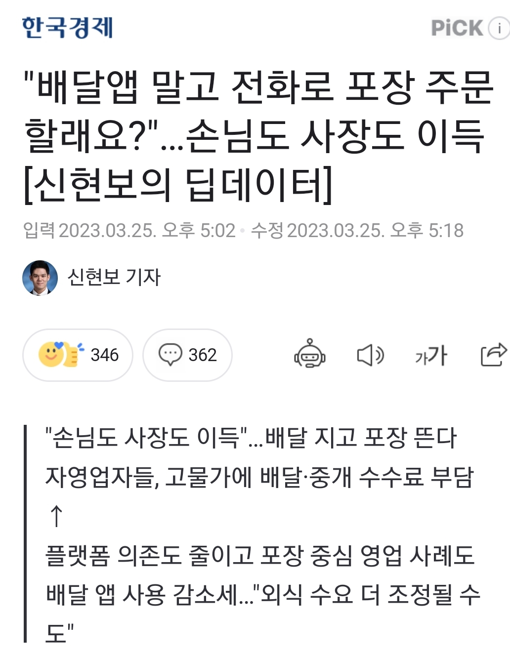 "배달앱 말고 전화로 포장 주문할래요?"…손님도 사장도 이득 [신현보의 딥데이터]