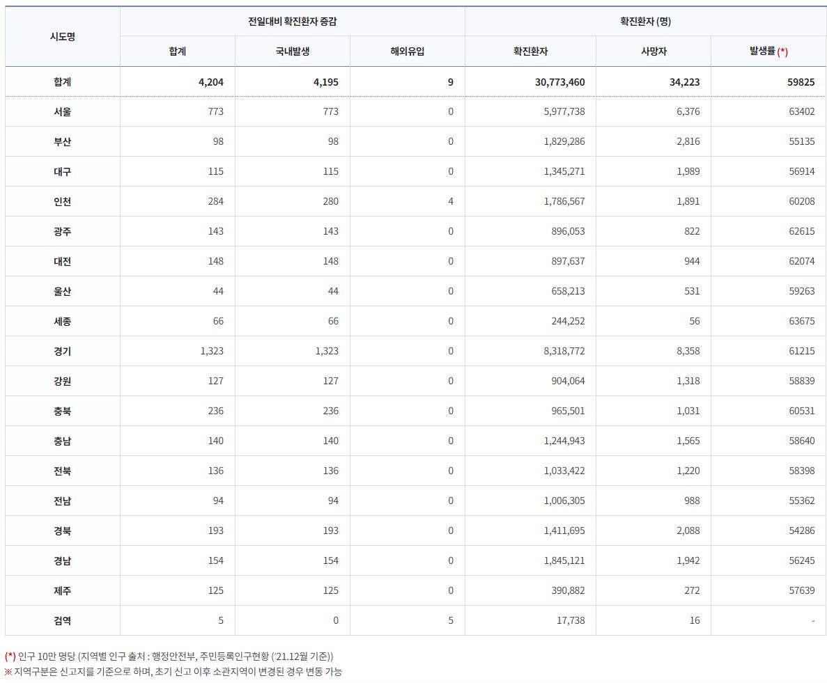 재택치료자수는 아래 표에서 7일간의 신규확진자합계에서 7일간의 신규입원자합계를 빼면 비슷합니다.