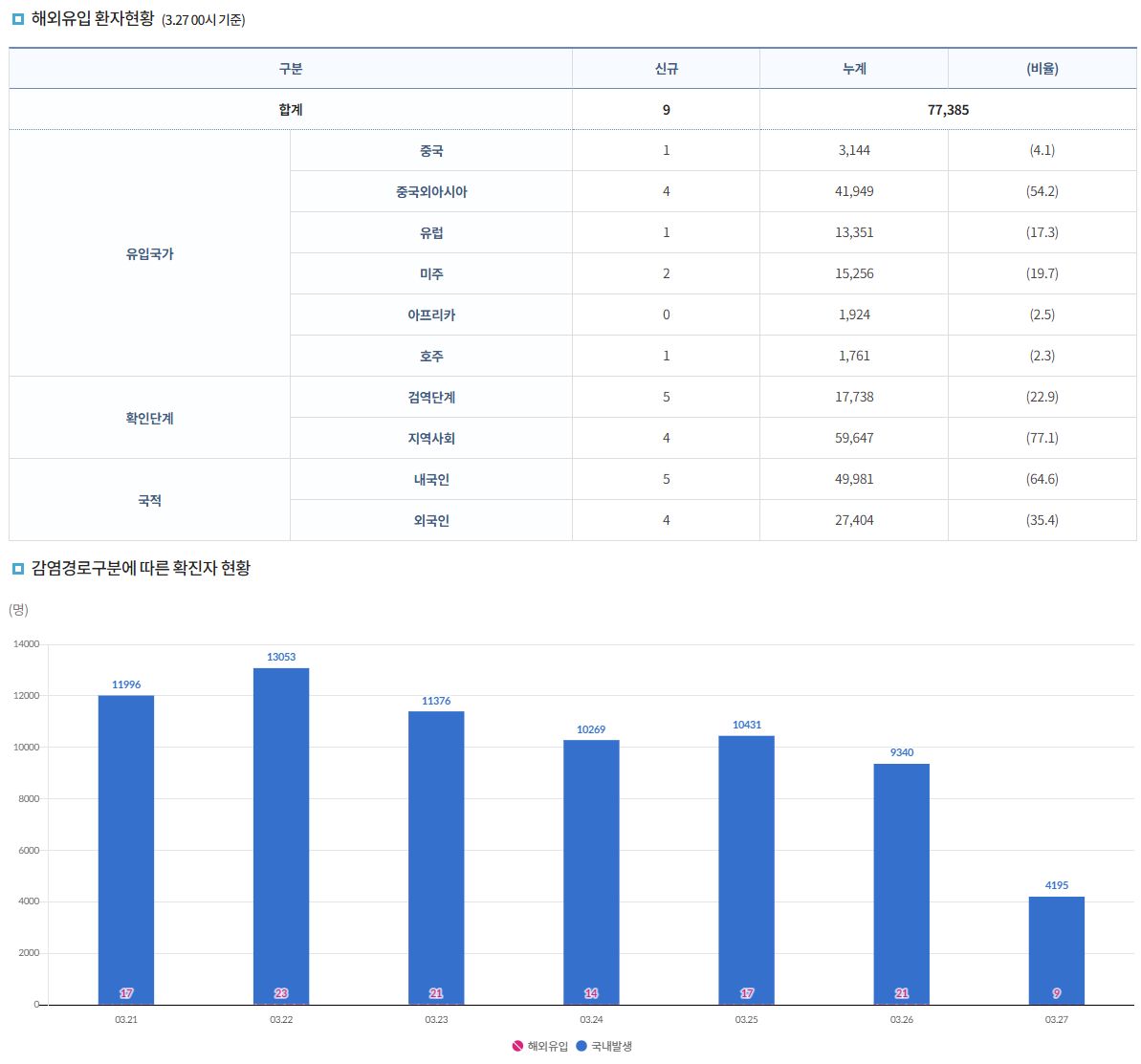 코로나19집계(2023.3.27. 0시기준) 확진 +4천, 사망 +3명, 중환자병상가동률 27% 본문
