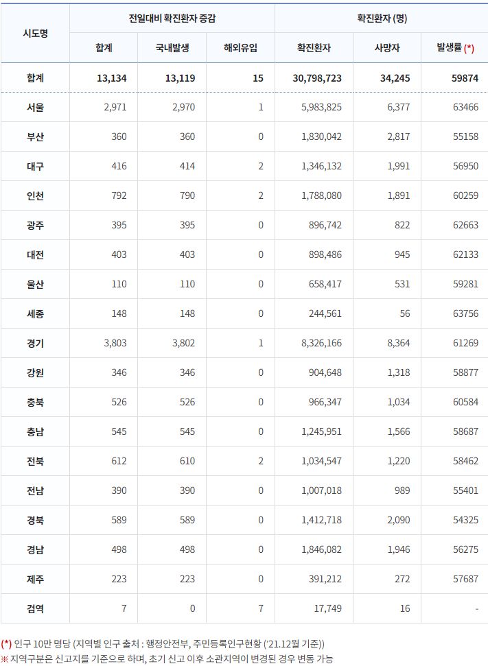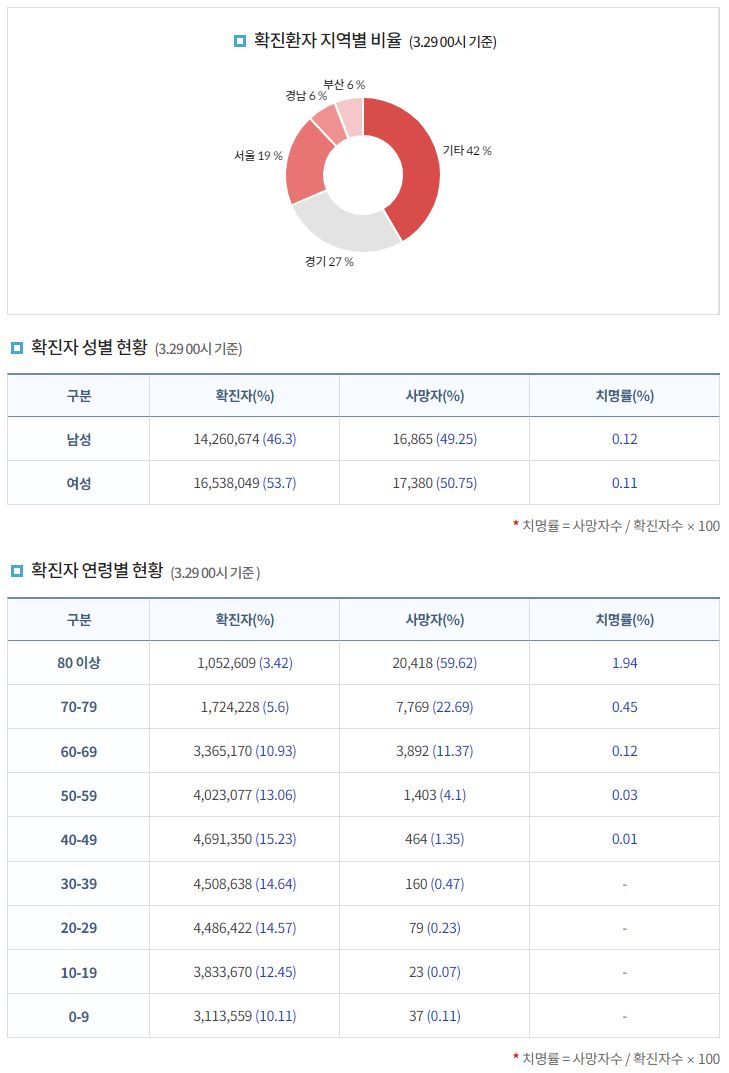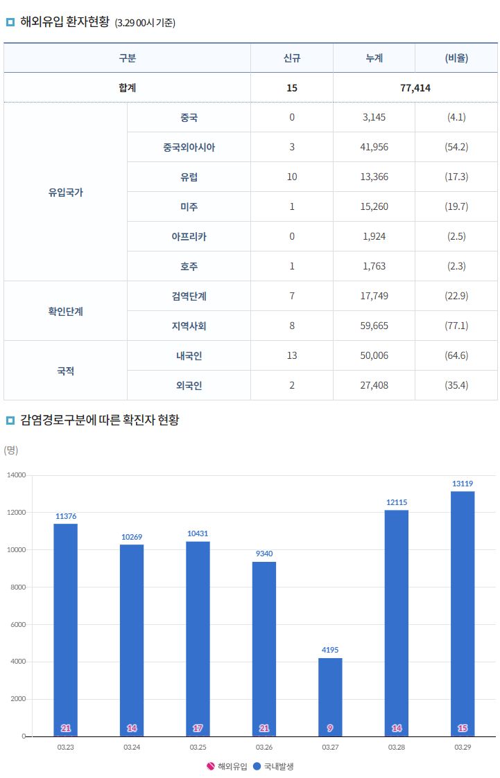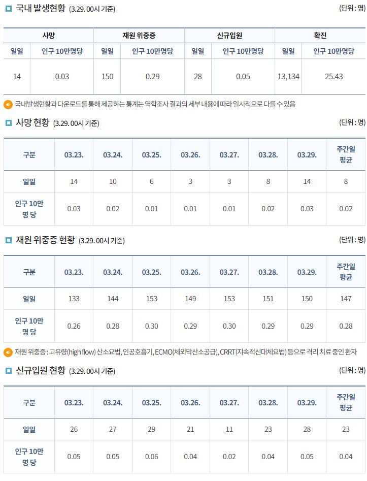 코로나19집계(2023.3.29. 0시기준) 확진 +1.3만, 사망 +14명, 중환자병상가동률 25% 본문