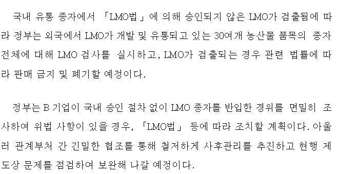 ※ 요즘은 GMO라 안 하고 LMO라고 하나? 싶어서 찾아본 것.