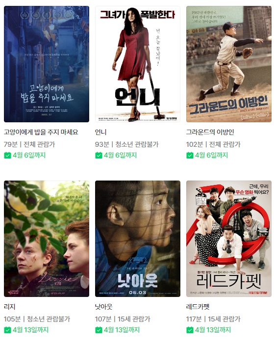 | (네이버시리즈온 무료영화) 패션 오브 크라이스트, 원스 어폰 어 타임 인 베니스, 작은 연못, 검객, 꽃피는 봄이 오면, 마음 세탁소 등 (0) | 2023.04.14 |