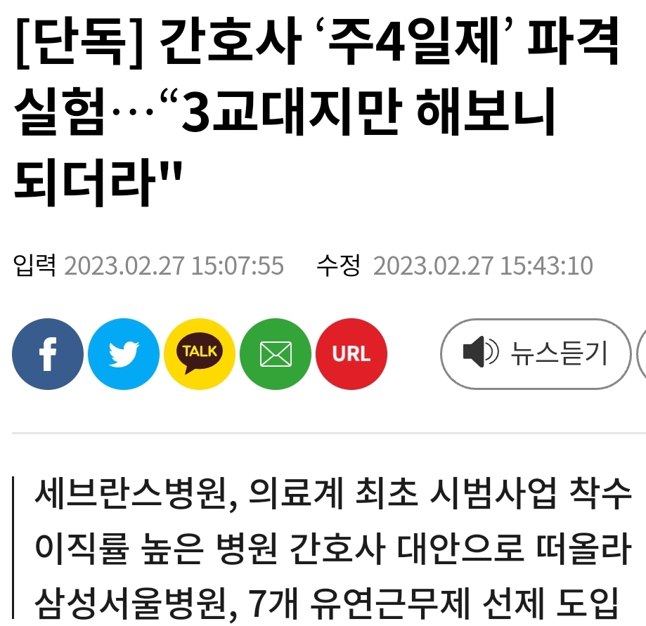 대형병원 간호사 교대근무방식 개선 시도에 관한 기사 하나 (작성중) 본문