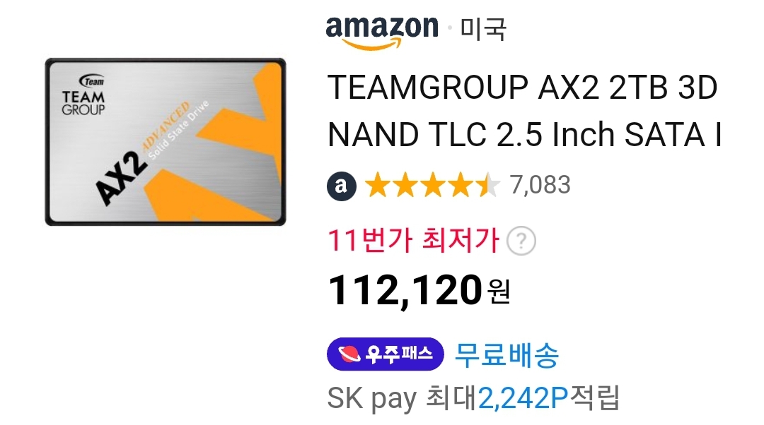 (11번가-아마존) 9.1만원짜리 2테라 SATA SSD 본문