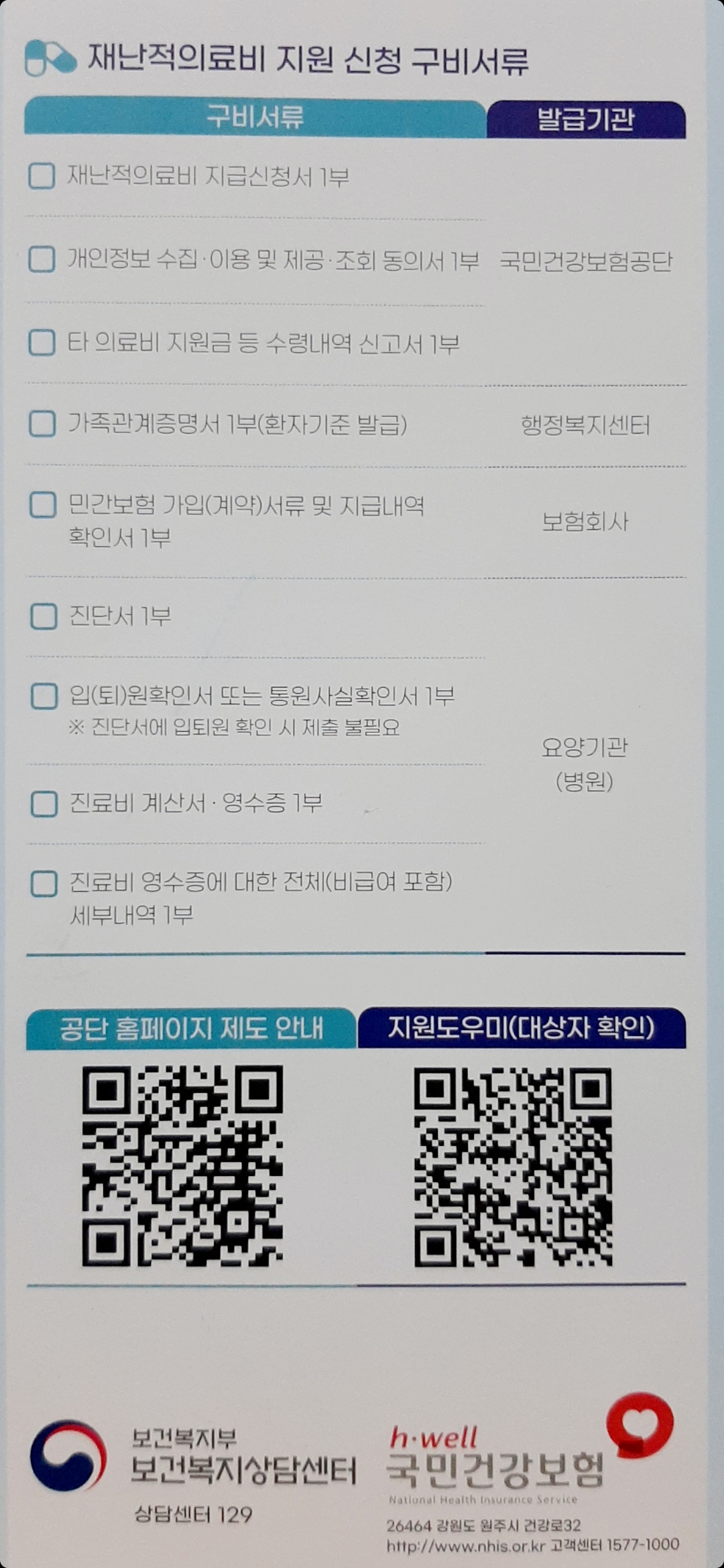 요즘 종합병원 로비에 보험금청구를 도와주는 코너가 있는 데도 있고, 이런 소책자를 비치해두는 데도 있습니다.