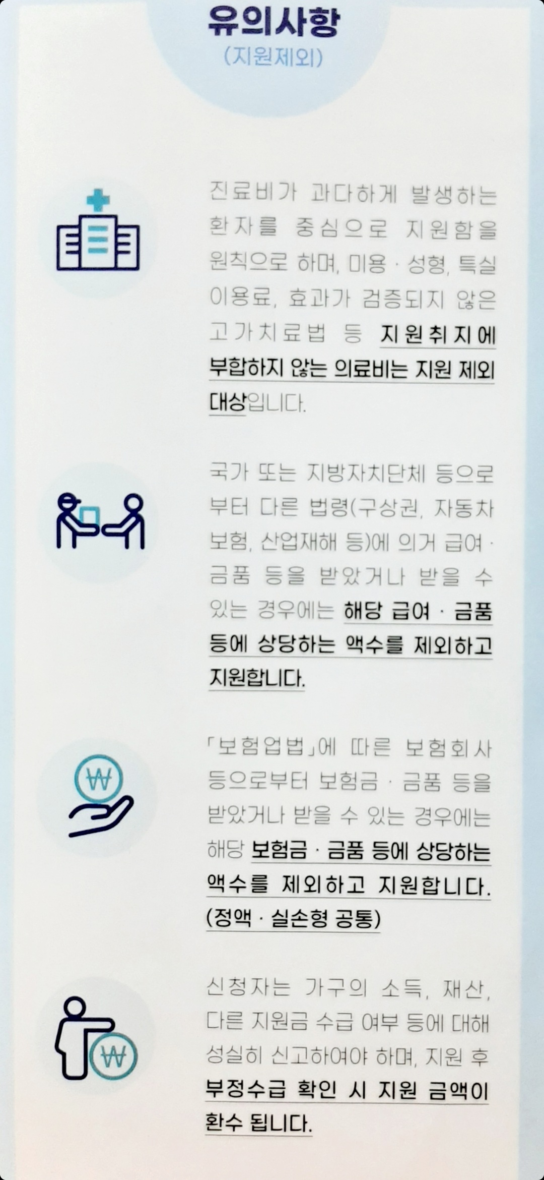 그리고 관련해 실손보험 및 기타 보험금지급여부도 설펴서 정말 어려운 사람들이 받도록 하는 것이 취지.
