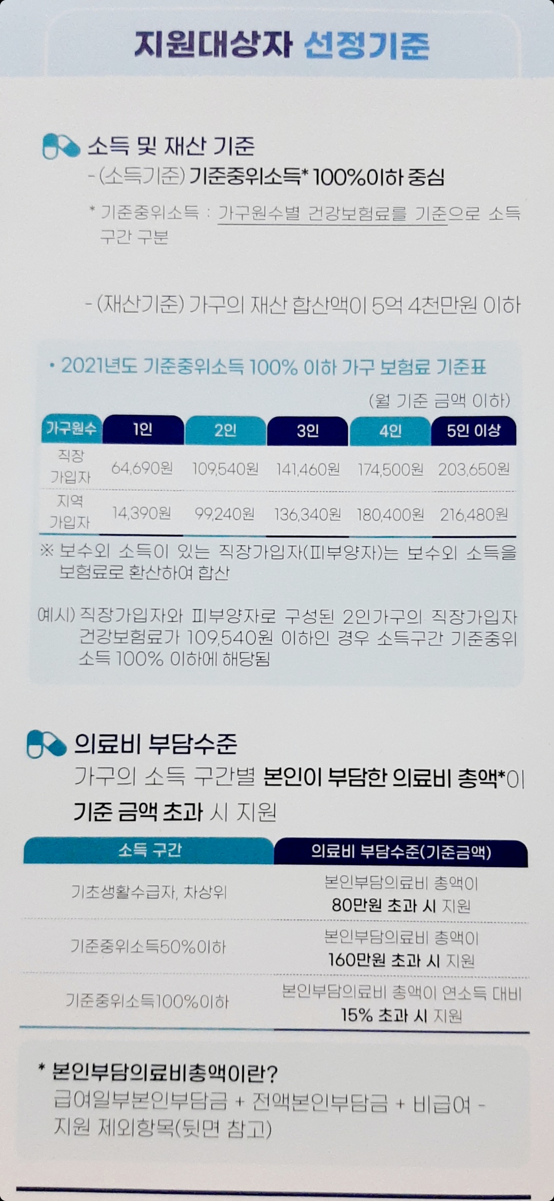 이것은 언제 가져왔는지 모르겠는데.. 있길래 일단 올려봅니다. 기본적으로 가구의 건강보험 보험료 월납부액과 재산보유액이 혜택여부를 가릅니다.