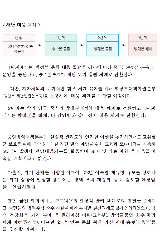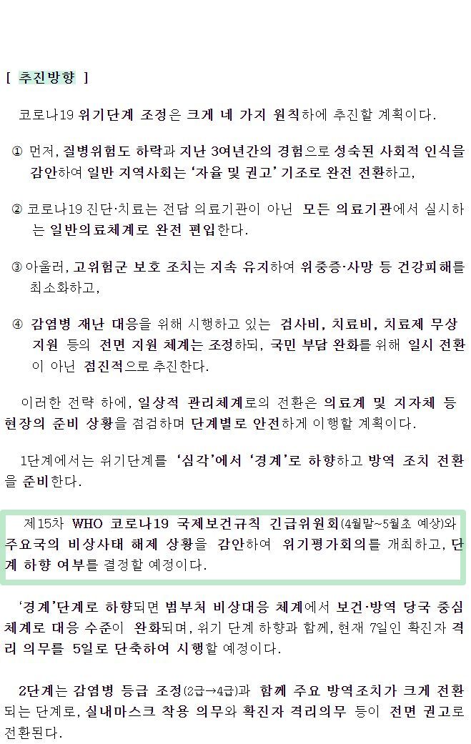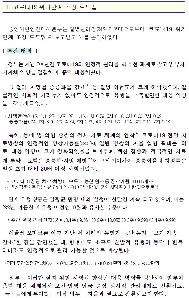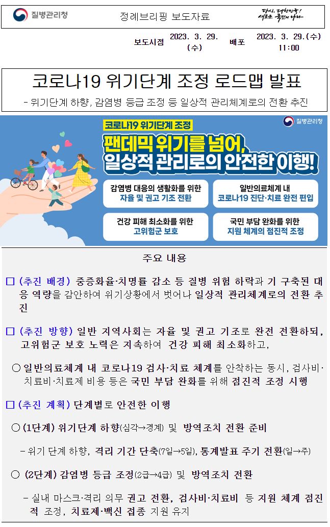 코로나19(2023.3.29) 위기단계 조정 로드맵 발표 본문