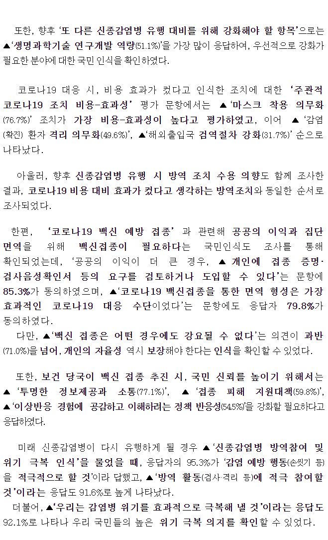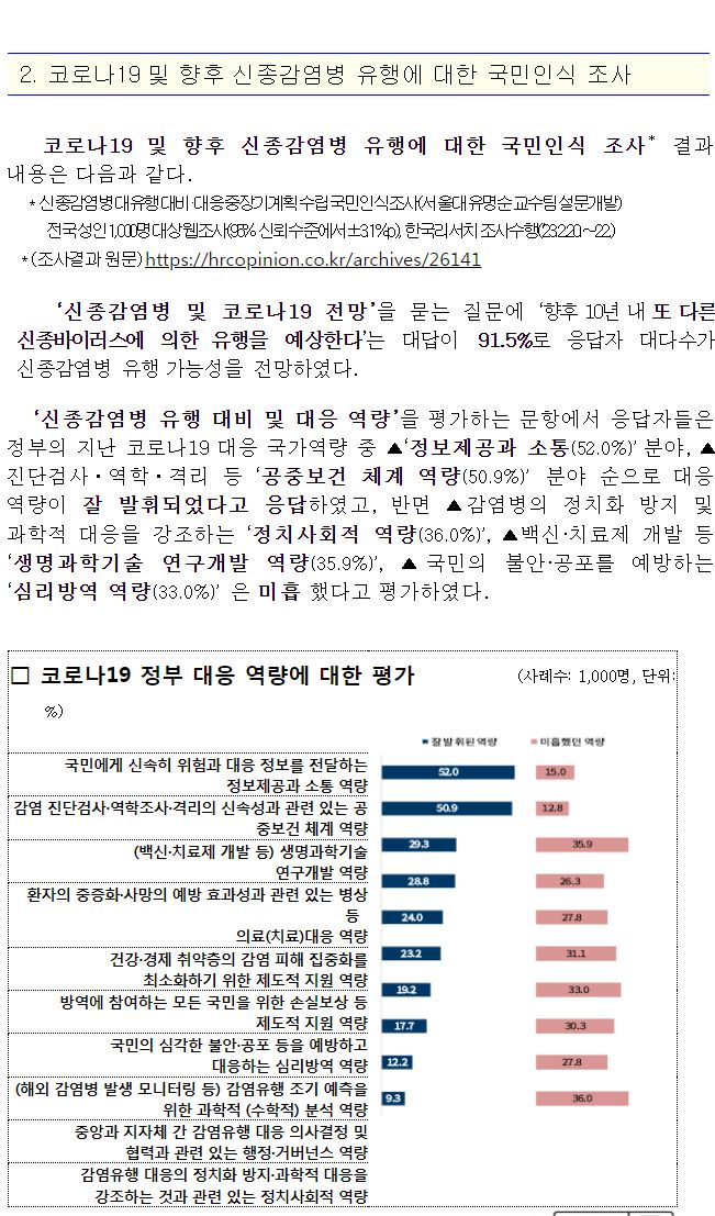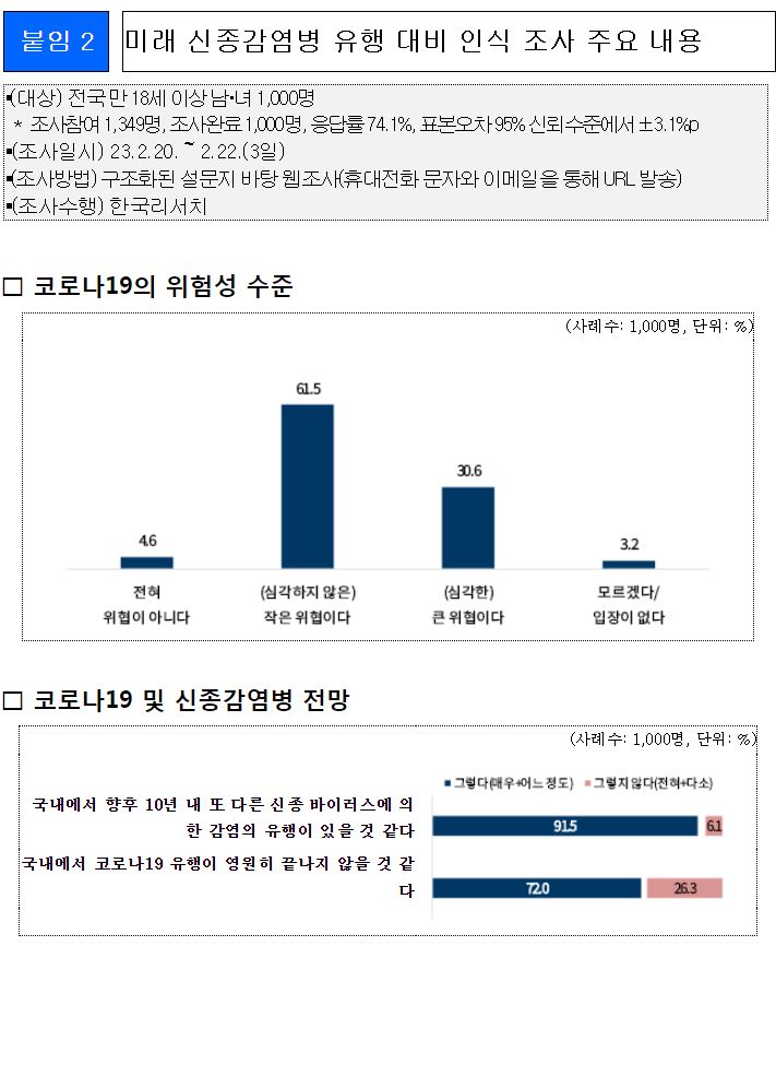 코로나19 및 향후 신종감염병 유행에 대한 국민인식 조사