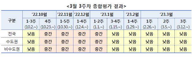 코로나19 주간 위험도 평가 (3.12.∼3.18.): 낮음