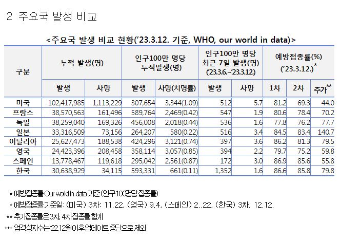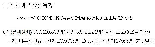 출처는 질병관리청 2023.3.22. 보도자료입니다. 늦게나마 정리합니다.