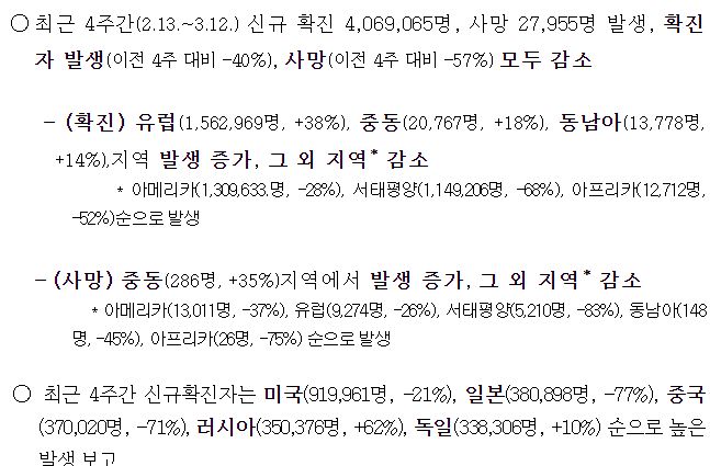 코로나19 주간 발생 동향 (3.12.∼3.18.)