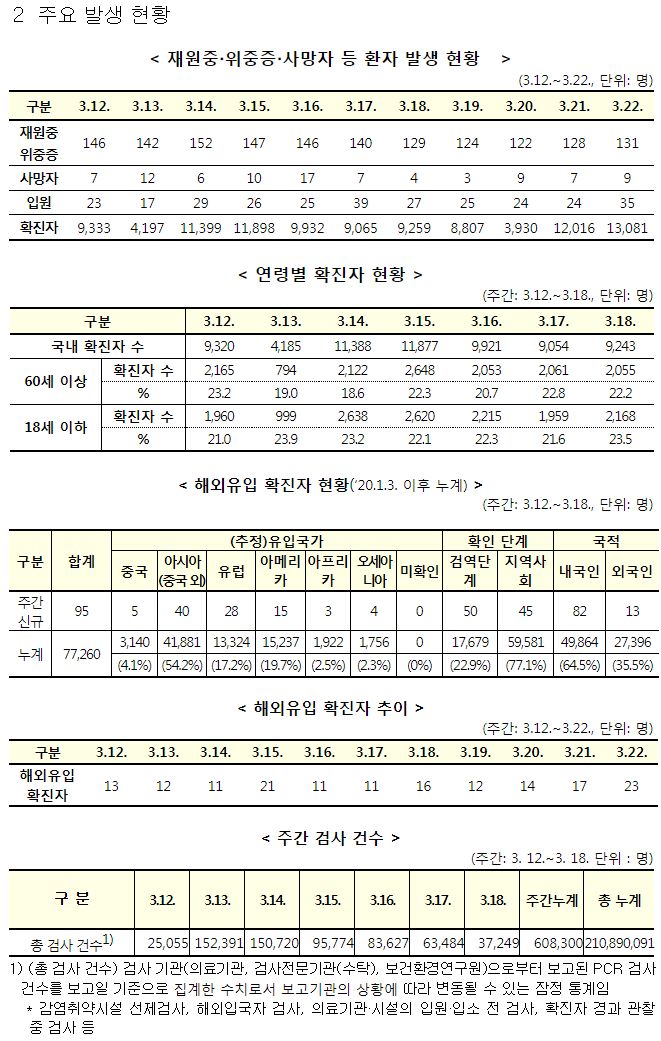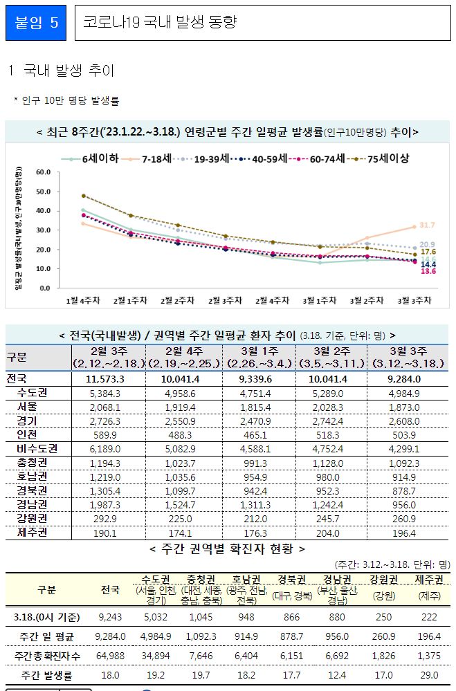 코로나19(2023.3.22) 주간 발생 동향 (3.12.∼3.18.) 본문