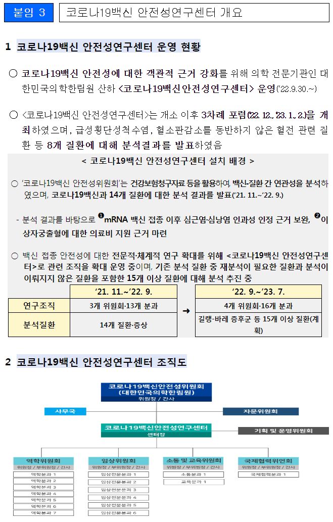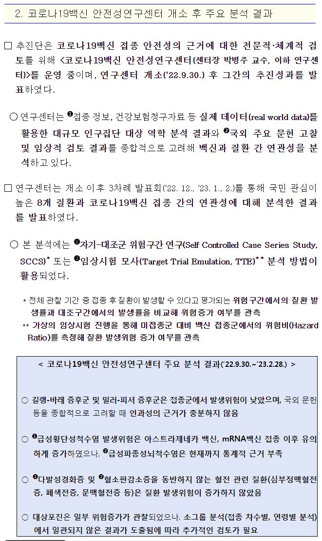 코로나19(2003.3.9) 백신 안전성연구센터 개소 후 주요 분석 결과 본문