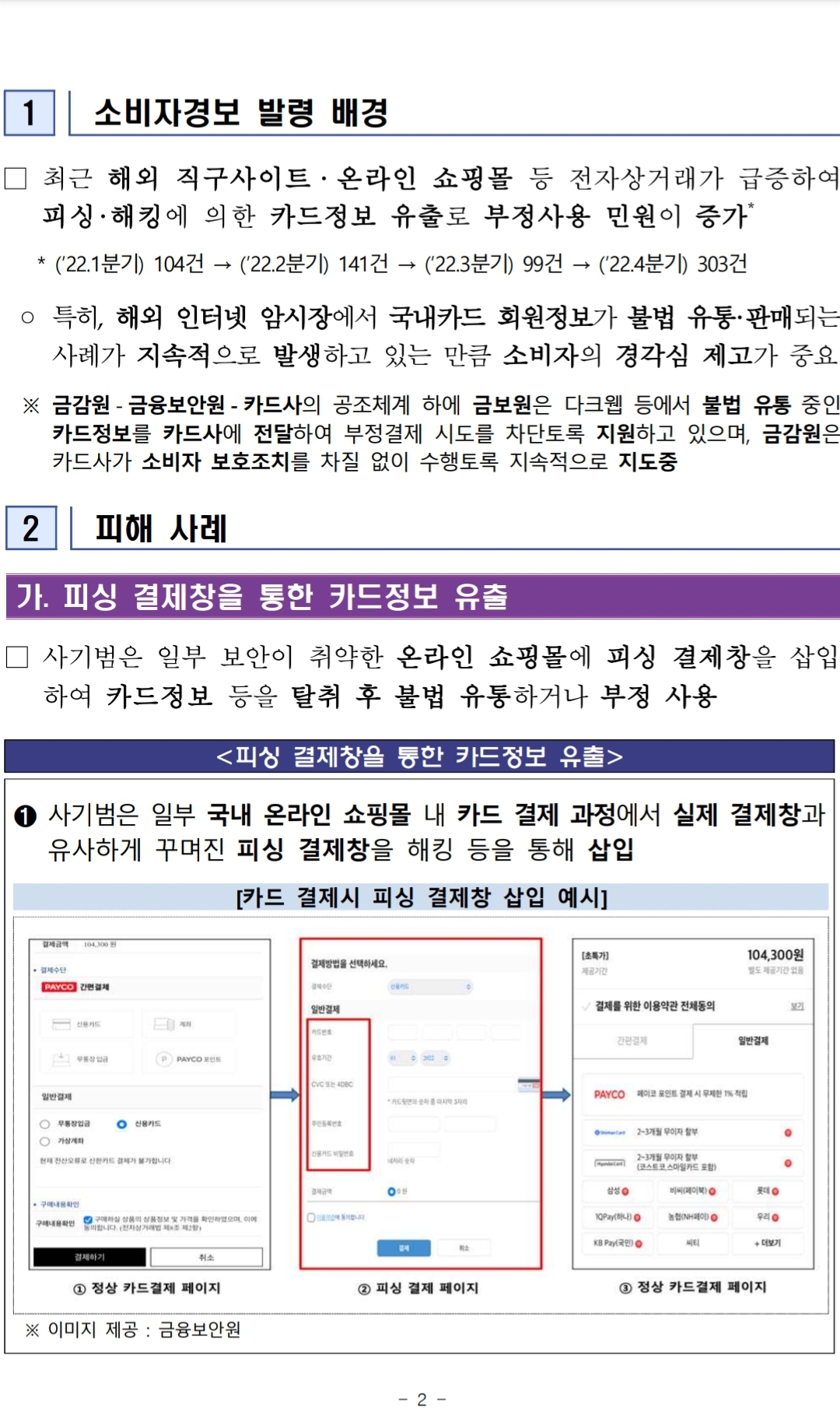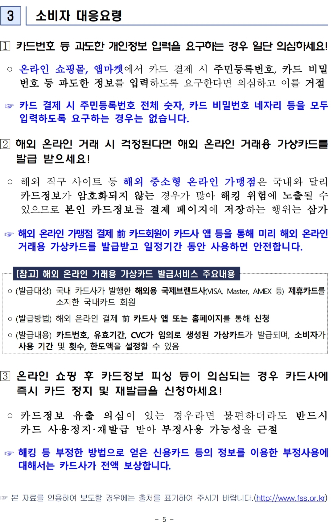 1. 카드 결제 시 주민등록번호 전체 숫자, 카드 비밀번호 네자리 등의 개인정보 입력을 요구한다면 의심하고 이를 거절하세요!