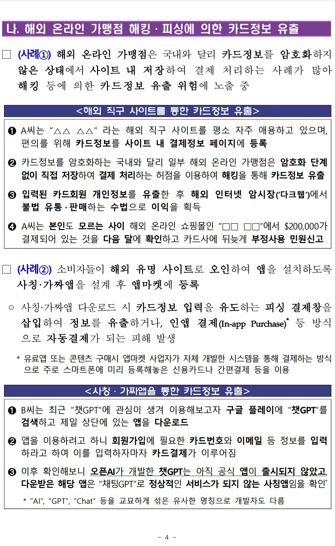 4. 온라인 쇼핑 후 카드정보 피싱 등이 의심되는 경우 즉시 하나카드 콜센터(☎1800-1111)로 카드 정지·재발급을 신청하세요!