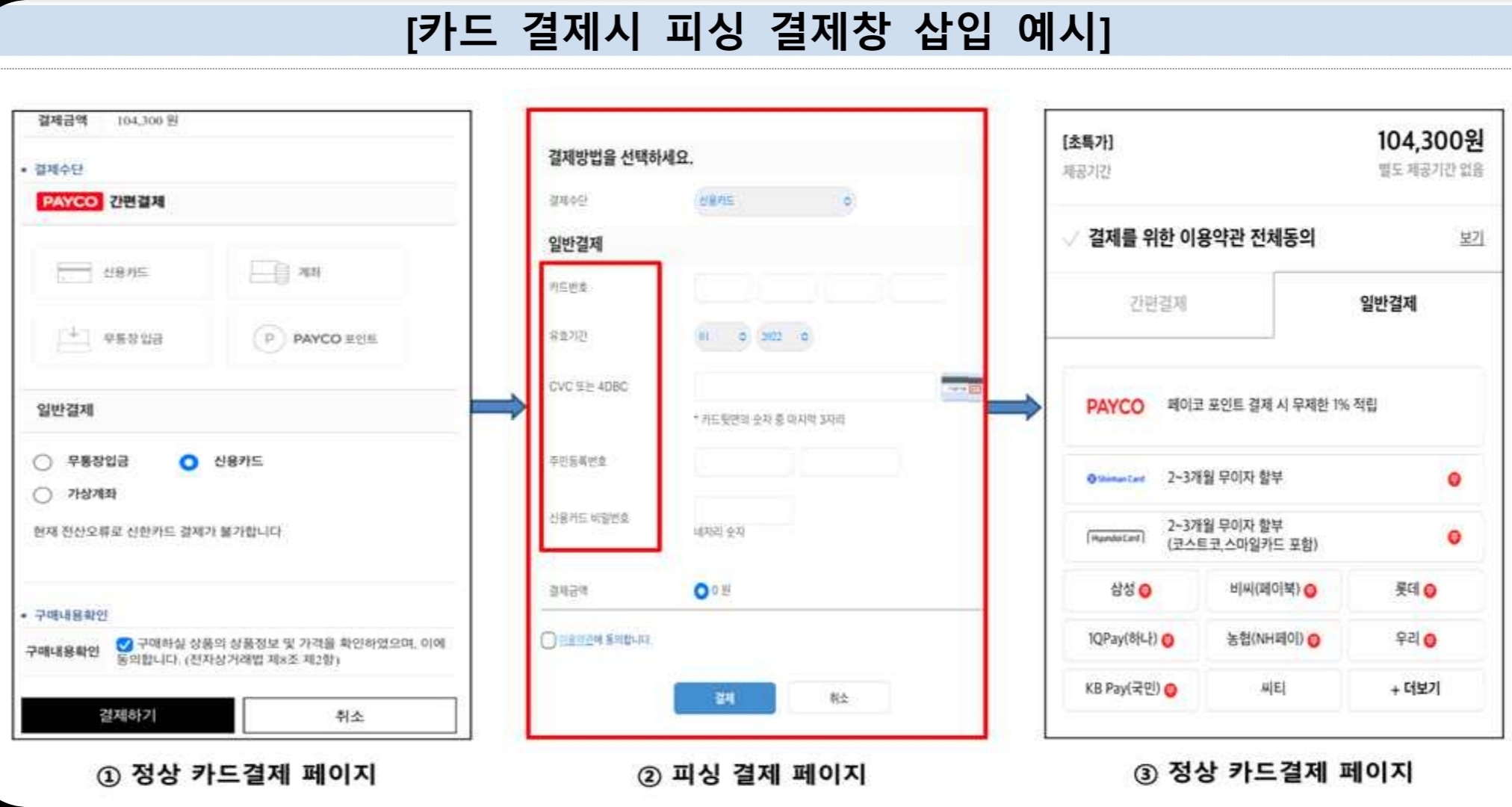 (범죄사이트의)1 카드결제정보·개인정보탈취용 결제창 예시