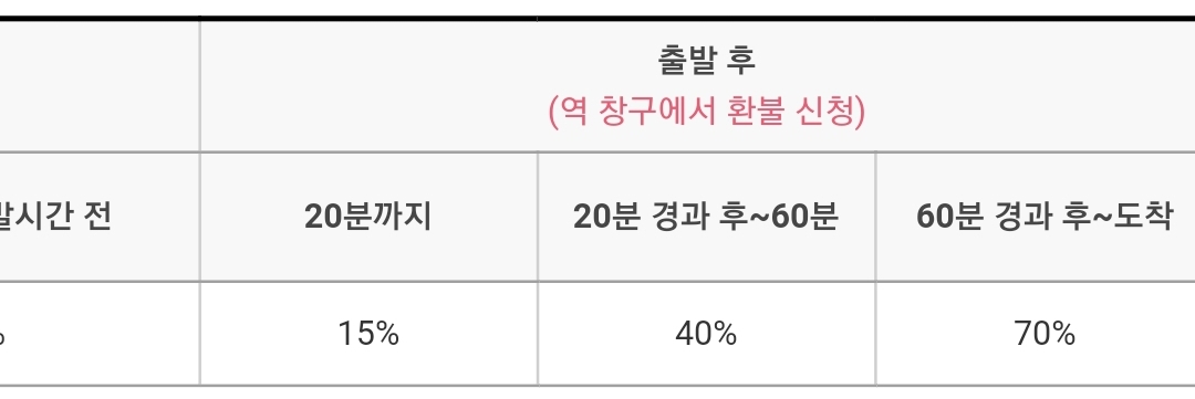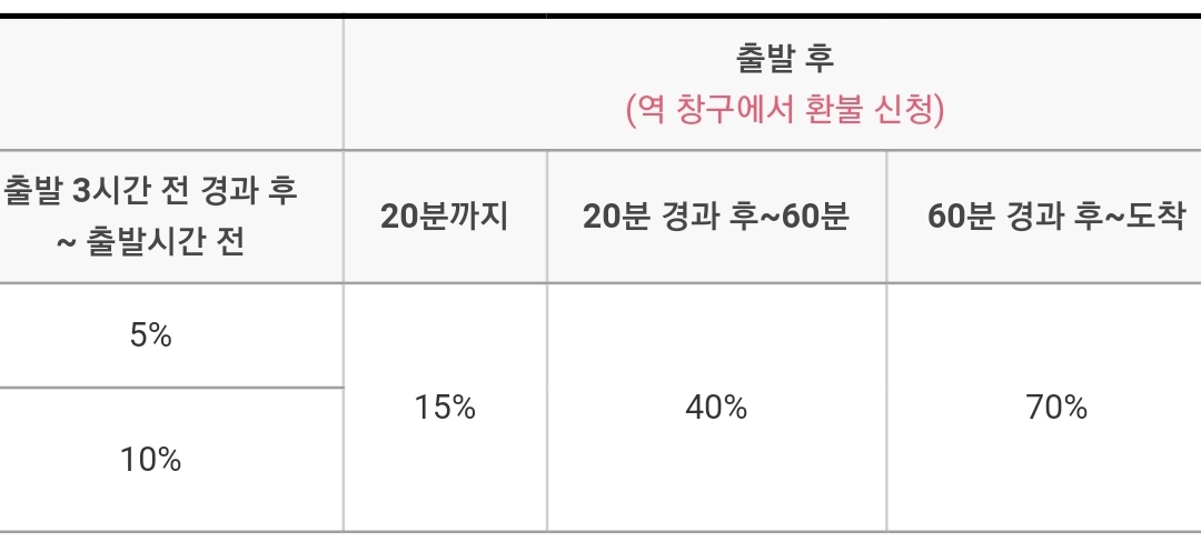 ㅡ 출발시각 이후에는 역에서 환불 신청하셔야 합니다.