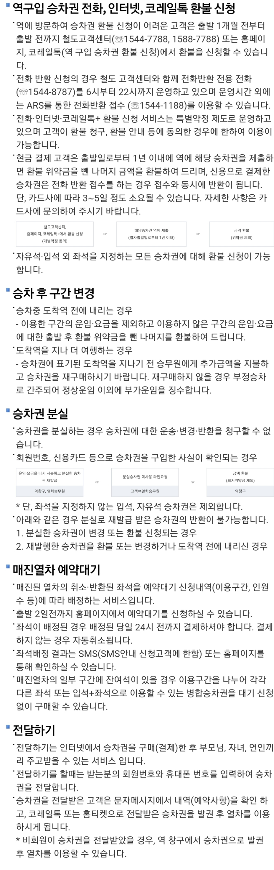 ㅡ 출발시각 이후에는 역에서 환불 신청하셔야 합니다.