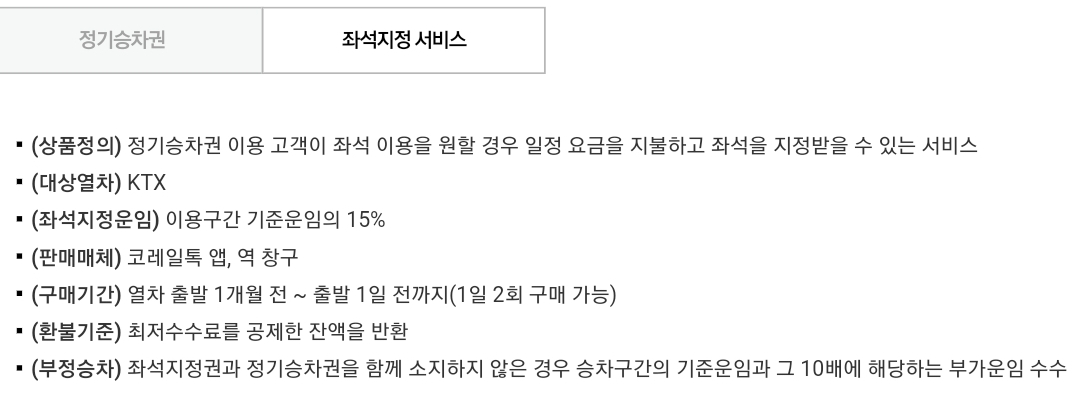 * 휴일은 KTX와 새마을호의 자유석을 운영하지 않음에 따라 입석 이용조건