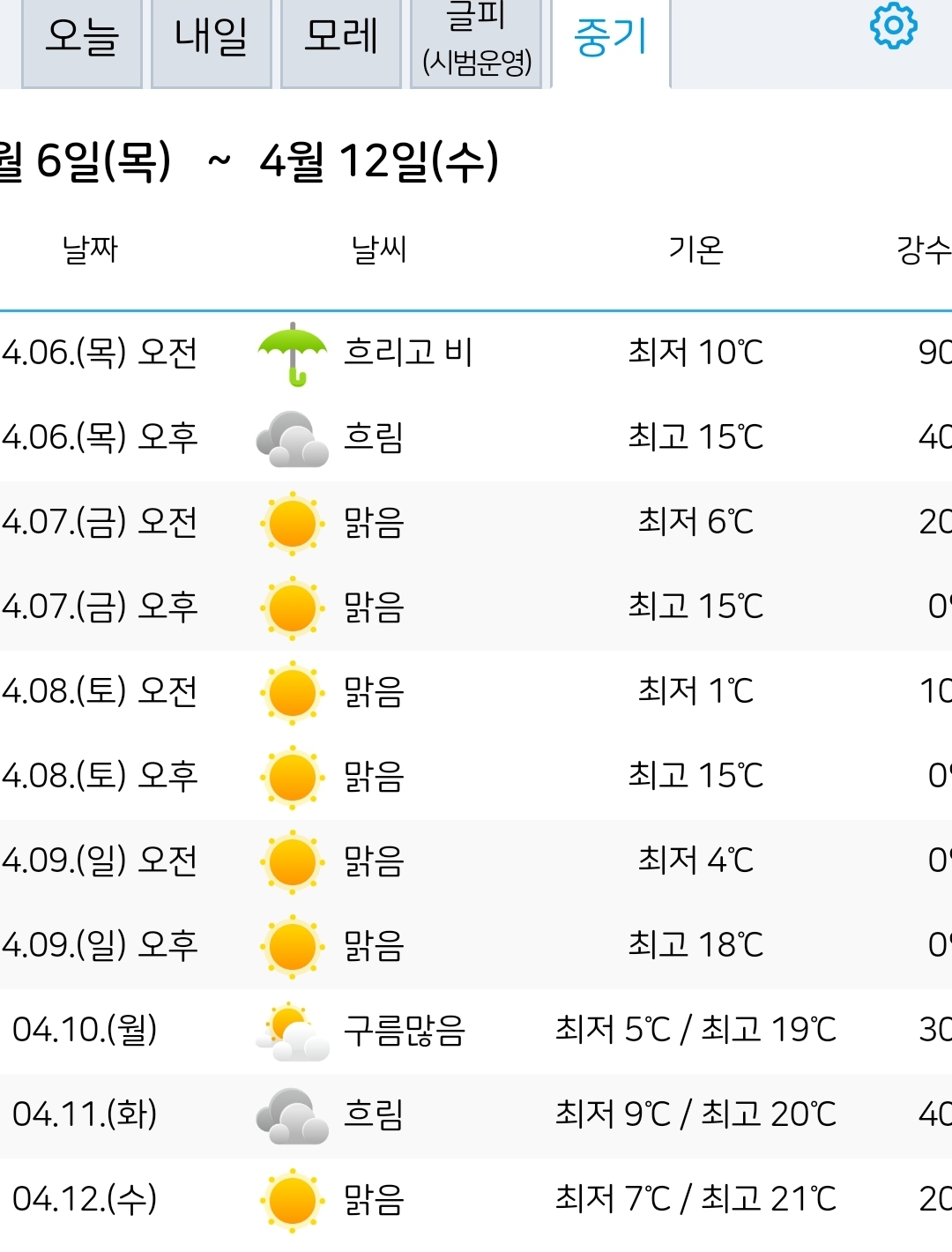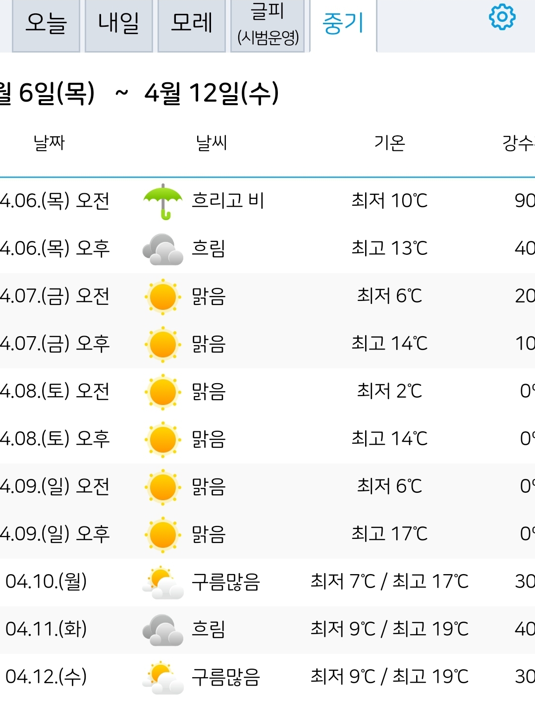 2023.4.3~12. 서울 대전 일기예보: 수요일 비 본문