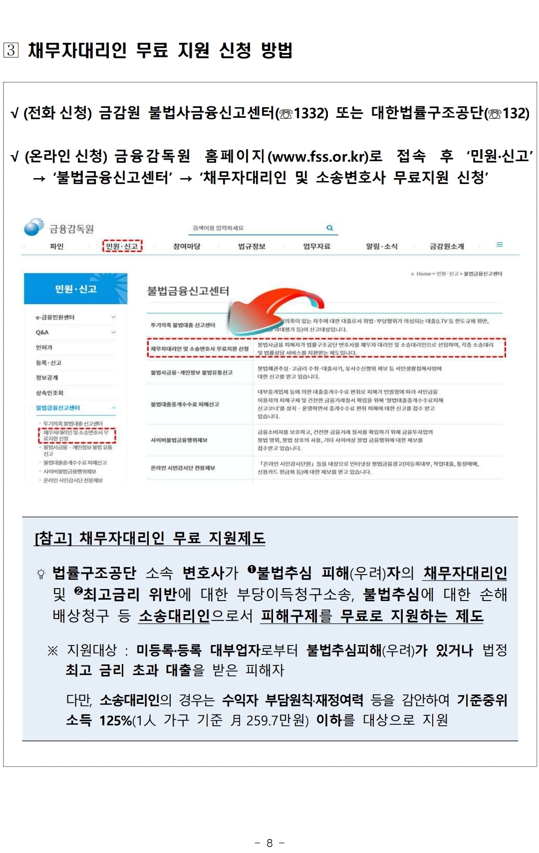 5. 고금리, 불법추심 피해발생시 채무자대리인 무료 지원제도를 활용하세요.