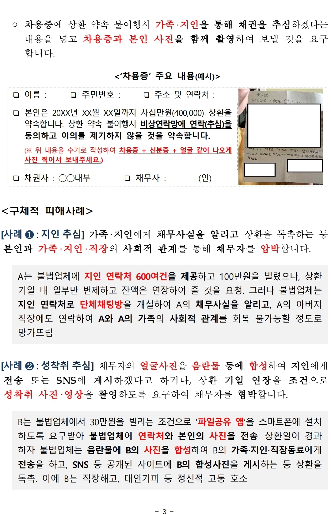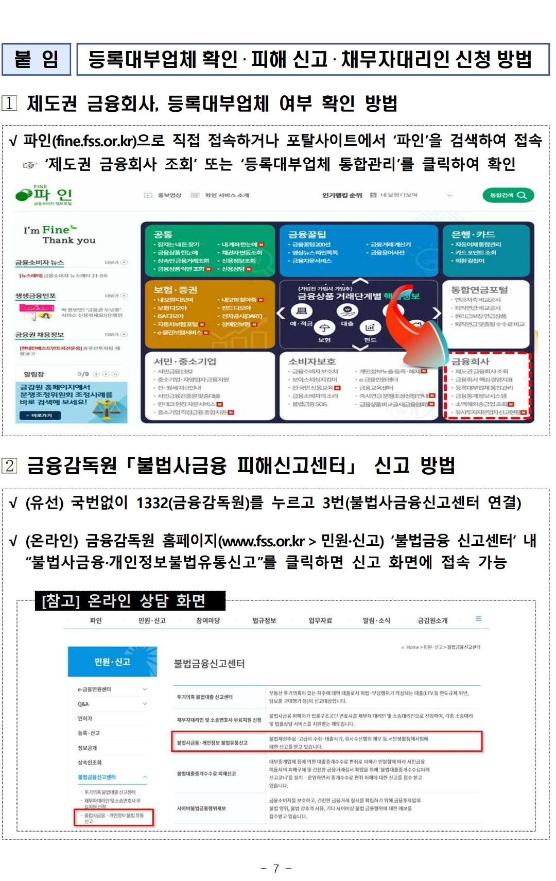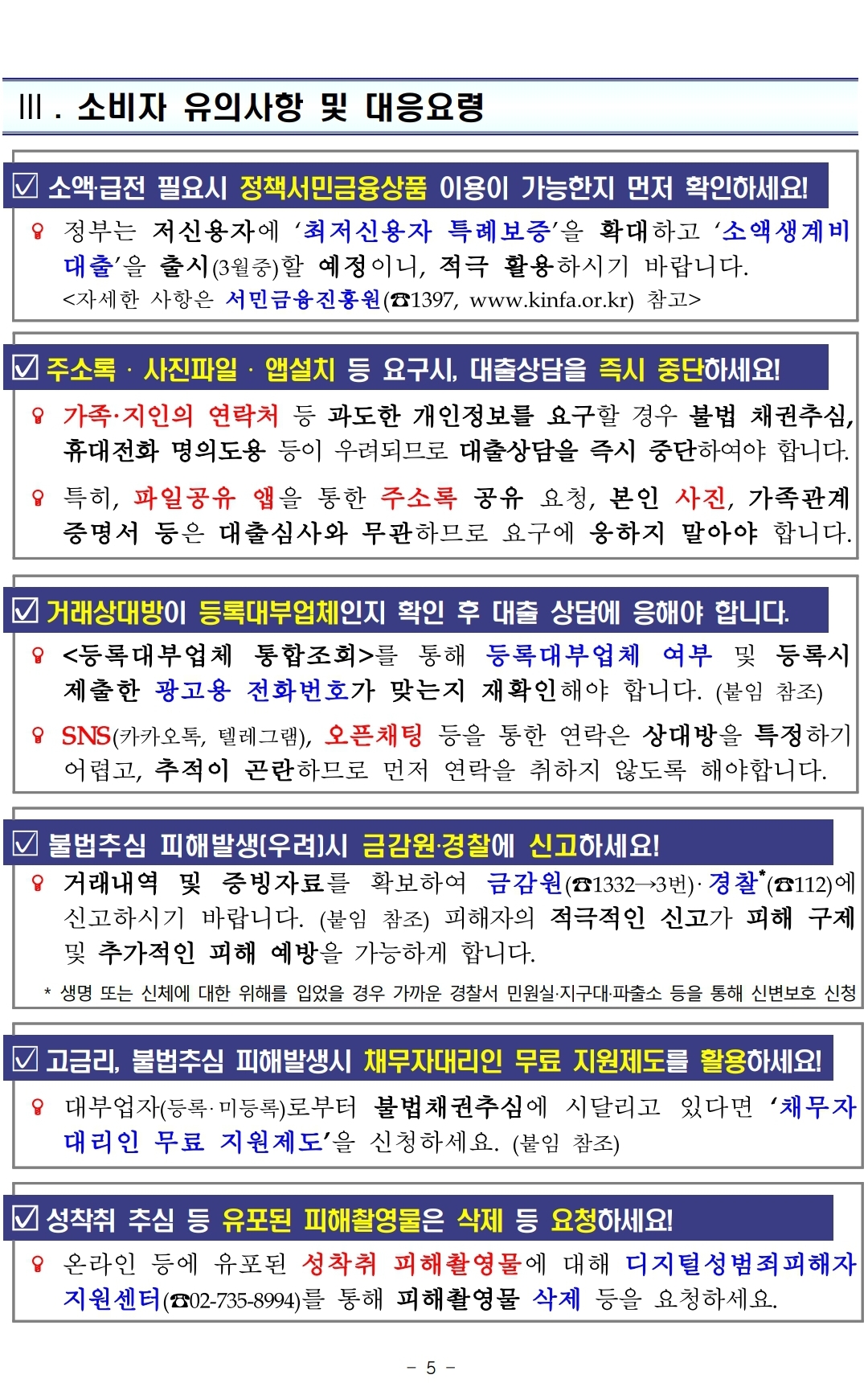 4. 불법추심 피해발생(우려)시 금감원(☎1332→3번) 또는 경찰(☎112)에 신고하세요.