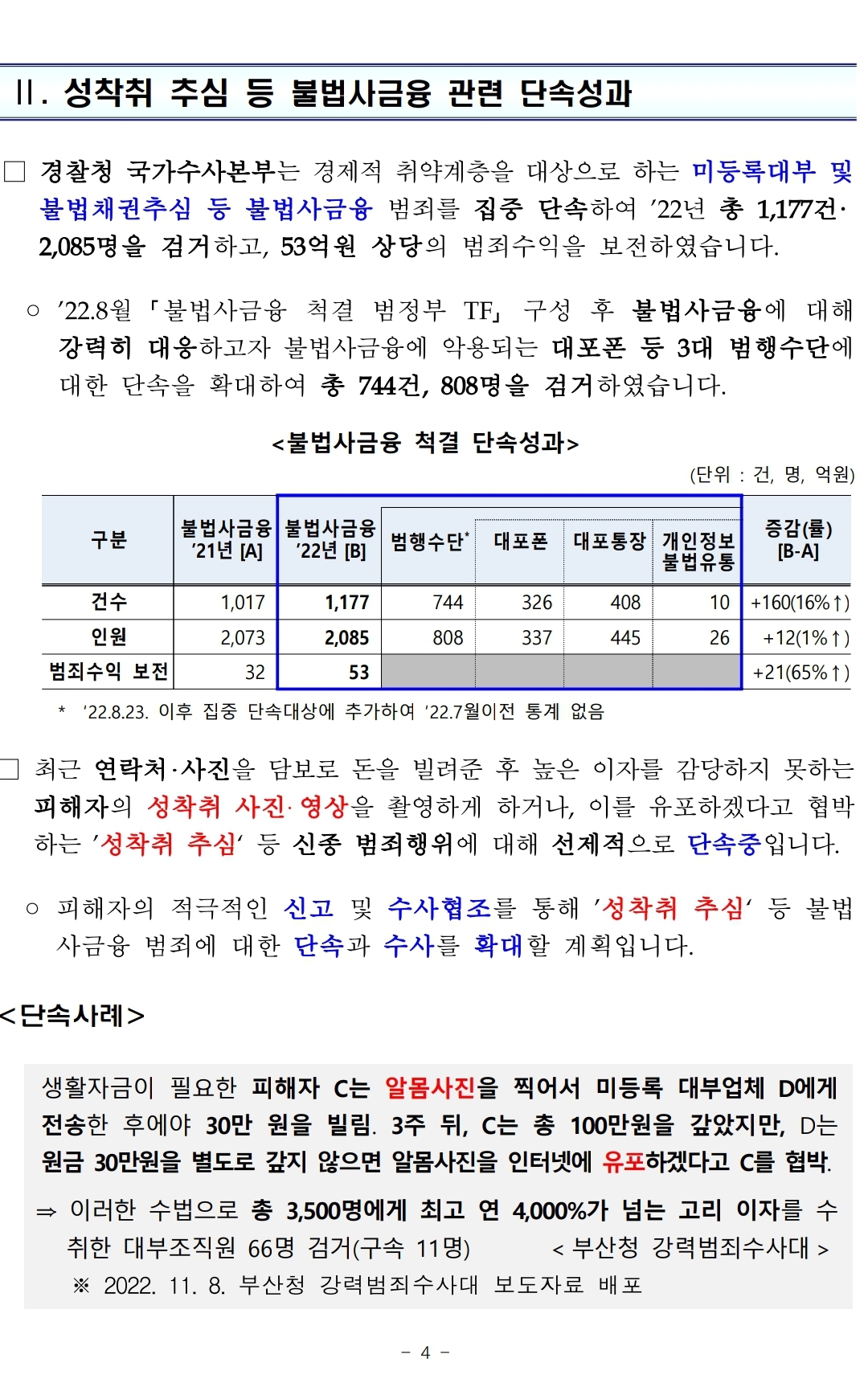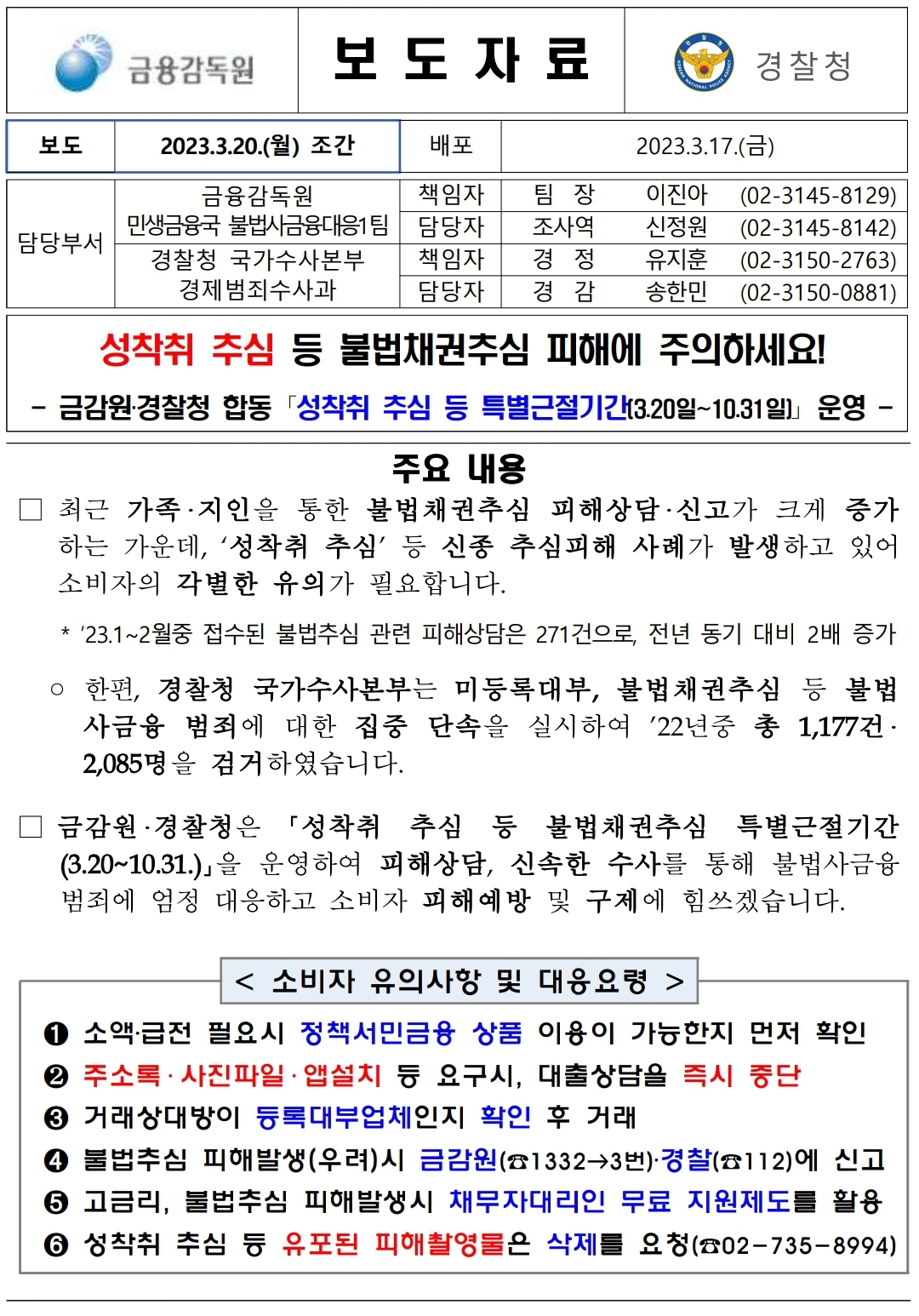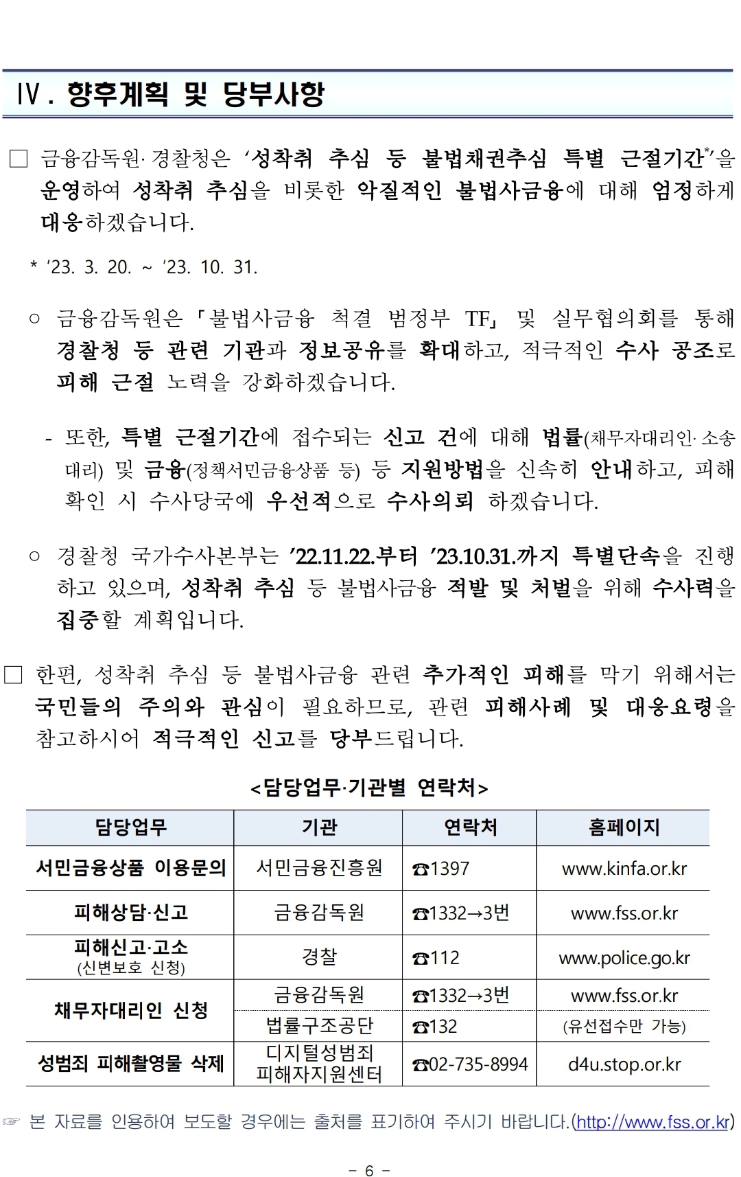 4. 불법추심 피해발생(우려)시 금감원(☎1332→3번) 또는 경찰(☎112)에 신고하세요.
