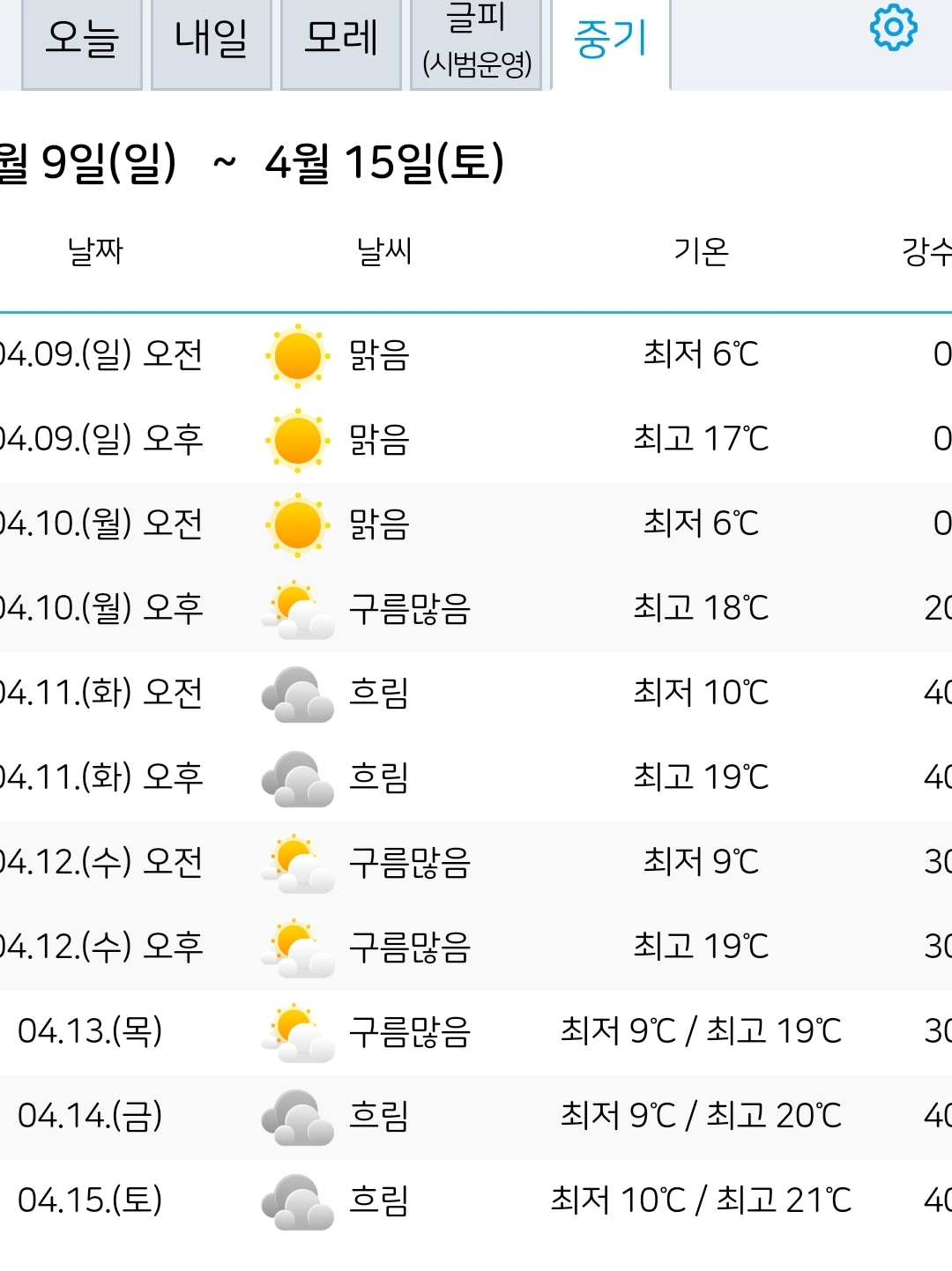 2023.4.6.~4.15. 서울·대전 일기예보: 비없는 봄날씨 본문