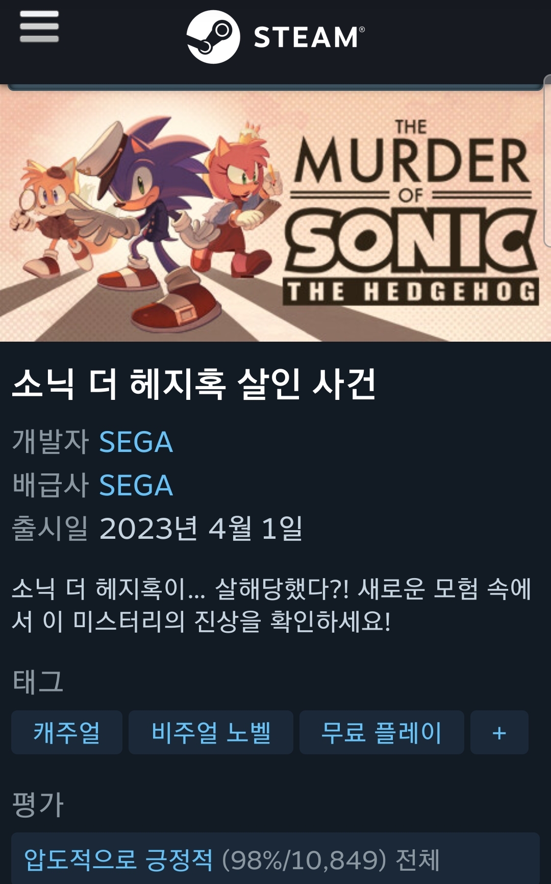 진짜 죽은 소닉, 만우절 기념 소닉 추리게임 스팀에 출시