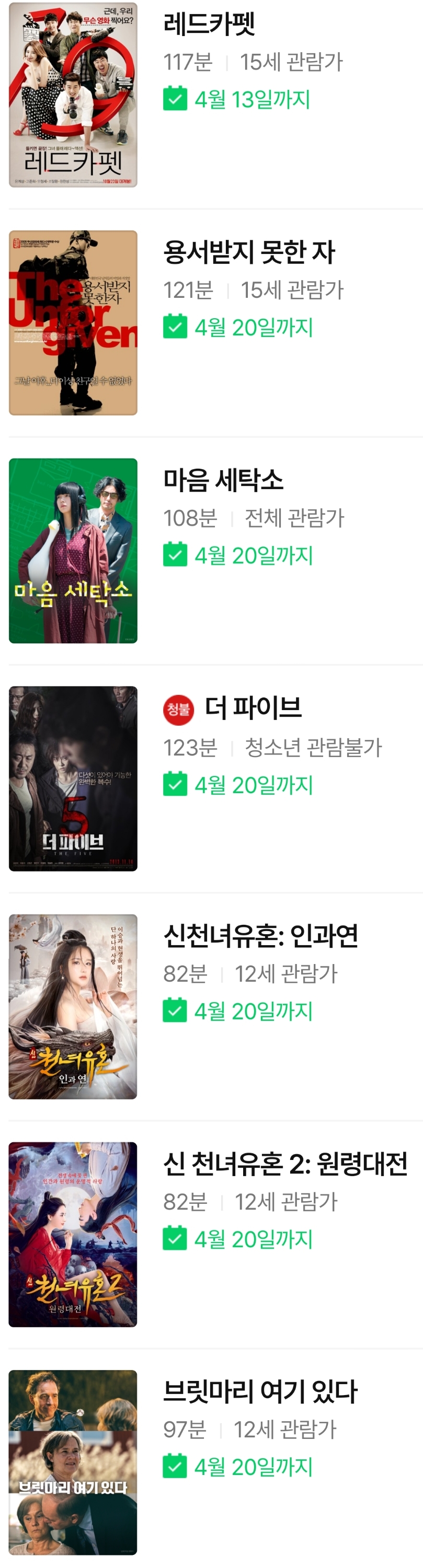 | (네이버시리즈온 무료영화) 패션 오브 크라이스트, 원스 어폰 어 타임 인 베니스, 작은 연못, 검객, 꽃피는 봄이 오면, 마음 세탁소 등 (0) | 2023.04.14 |