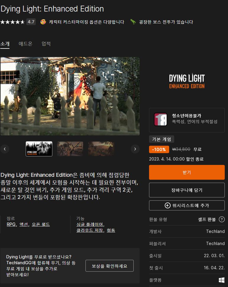 (에픽게임즈 무료게임) Dying Light: Enhanced Edition 본문