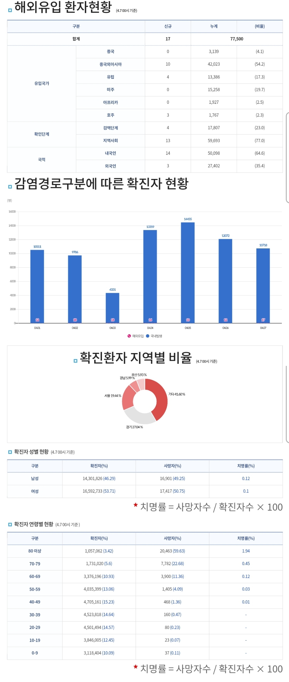 | 코로나19집계(2023.4.10. 0시기준) 확진 +4천, 사망 +8명, 중환자병상가동률 35% (0) | 2023.04.10 |