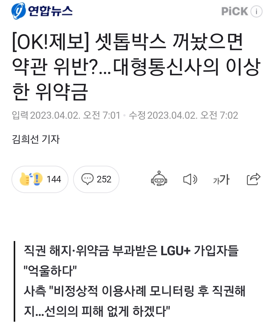 LGU+ 의 이상한 IPTV 위약금 영업 - 연합뉴스 기사 본문