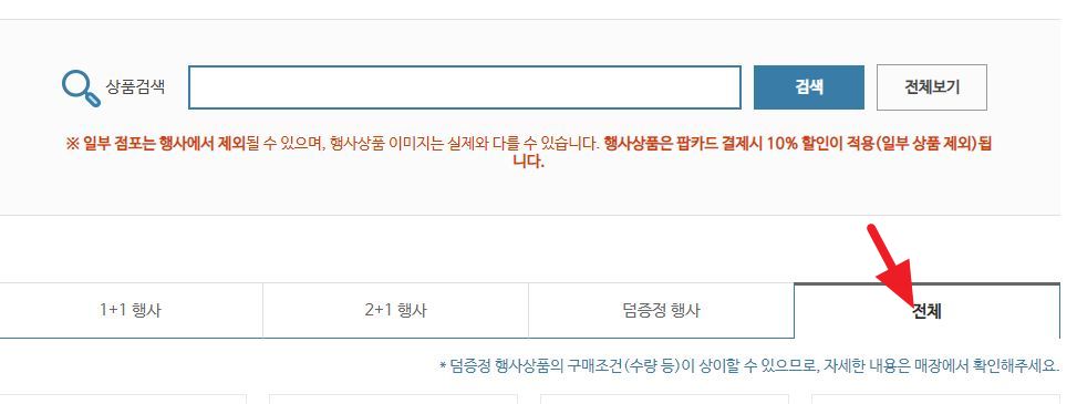 GS25는 아무 상품이나 검색하려면 "전체" 탭을 눌러줄 것.