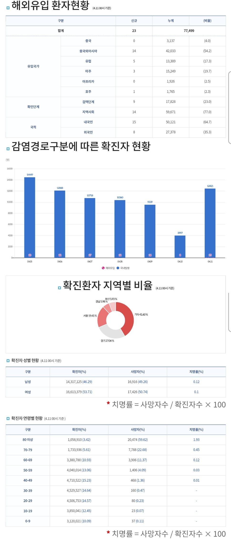 코로나19집계(2023.4.11. 0시기준) 확진 +1.2만, 사망 +10명, 중환자병상가동률 35% 본문