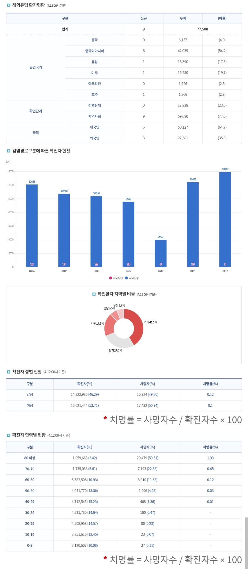 | 코로나19집계(2023.4.10. 0시기준) 확진 +4천, 사망 +8명, 중환자병상가동률 35% (0) | 2023.04.10 |