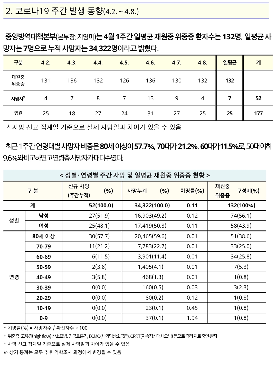 코로나19 주간 발생 동향(4.2.∼4.8.)
