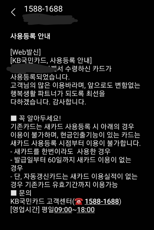 KB카드 (신용카드) 갱신발급 후 기존 카드의 유효기간 본문