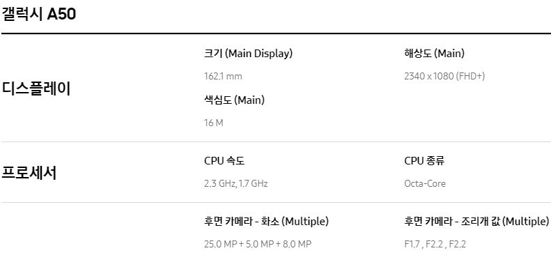 삼성전자 갤럭시A50 (2019), 갤럭시A 퀀텀 (2020) 사양 간단 비교와 링크 본문
