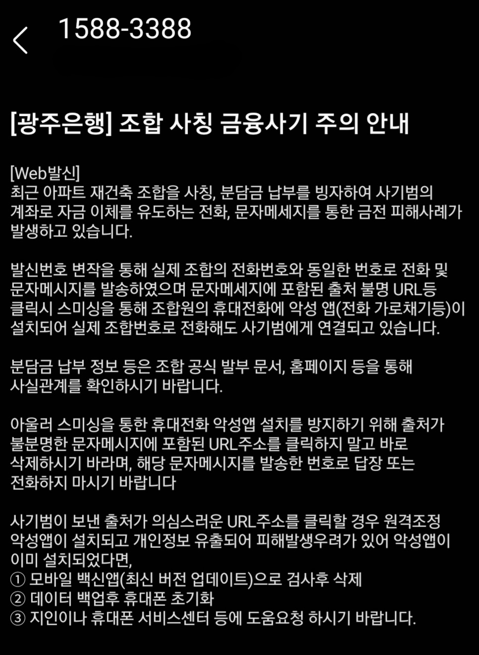 재건축 조합사칭 사기 문자·보이스피싱 주의 (발신번호변작 + 악성 앱 + 스미싱/보이스피싱 + 금융사기)☆☆ 본문