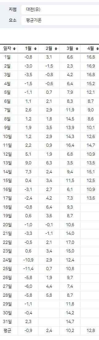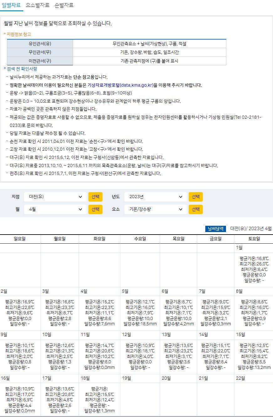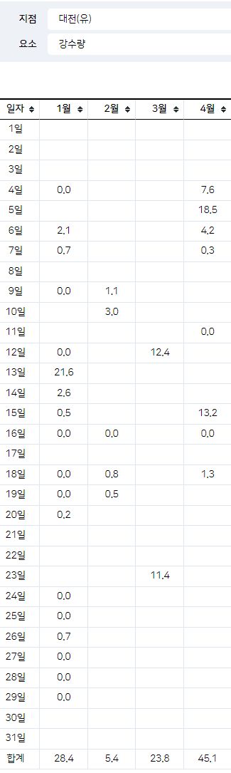 2023.1~4월 대전지역 평균기온과 강수량입니다.