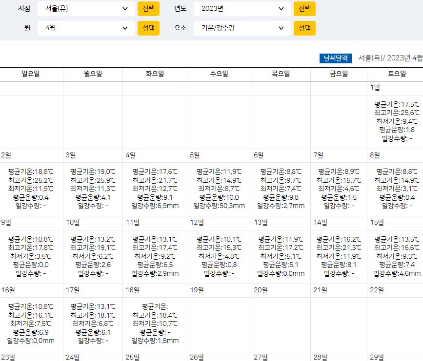 | 2023.4.24.월.~5.3.수. 서울·대전 일기예보 (0) | 2023.04.23 |