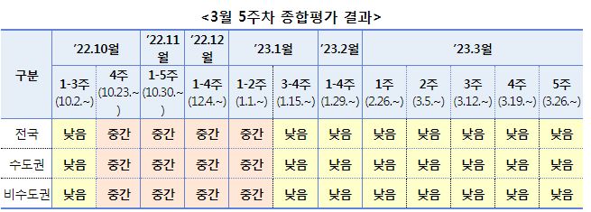 코로나19(2023.4.5) 주간 위험도 평가(3.26.∼4.1.) 본문