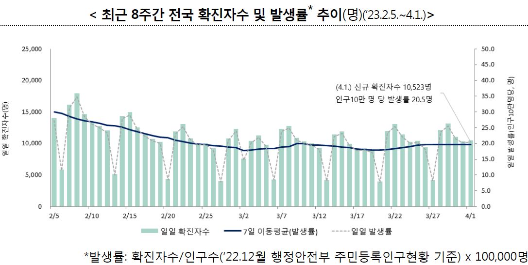 | 코로나19(2023.4.12) 주간 위험도 평가(4.2.∼4.8.): 낮음 (0) | 2023.04.19 |