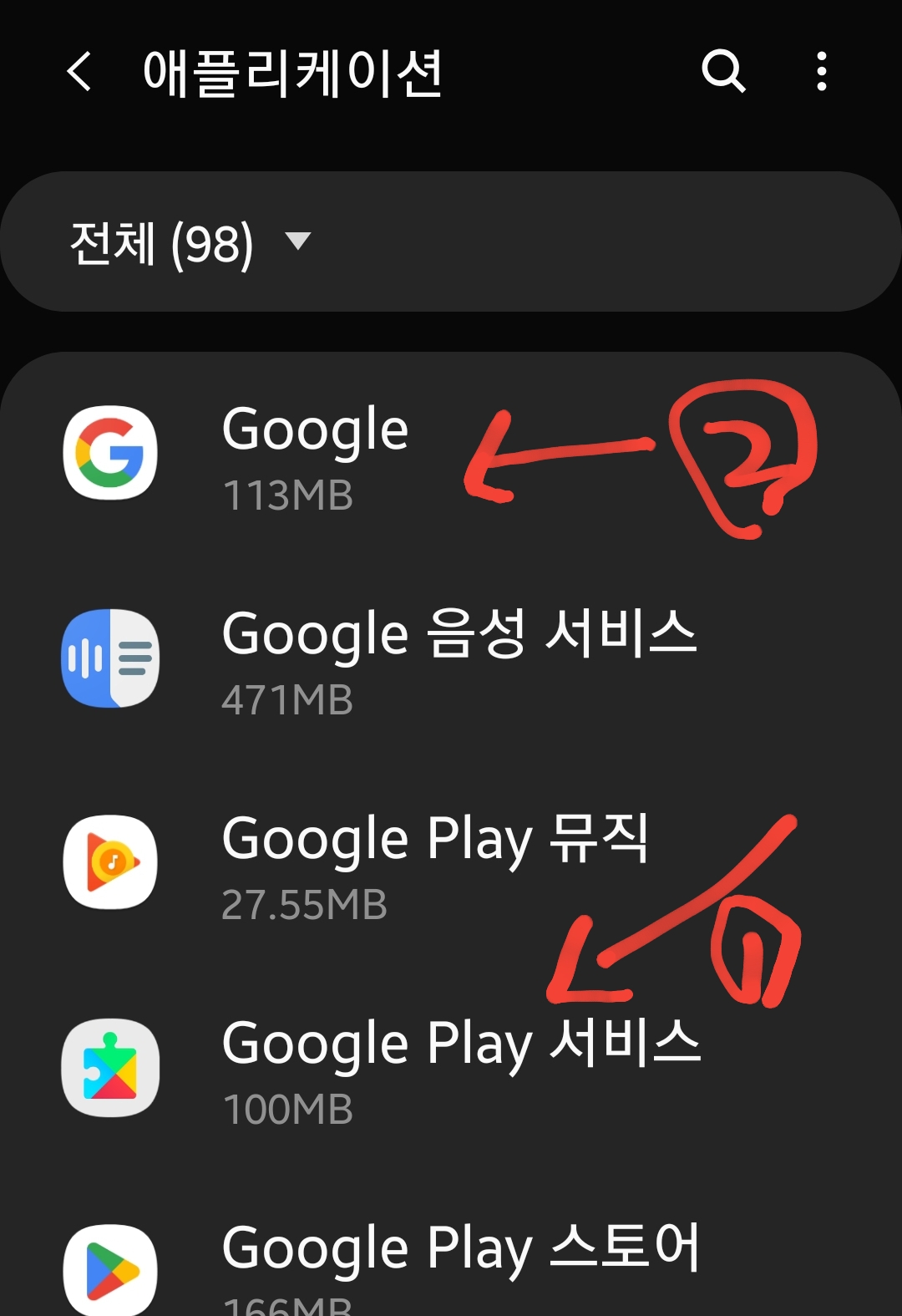 좀 검색해 보니, 저 앱이 자동업데이트(무조건 자동. 사용자설정불가)하다 에러나면 가끔 저럴 수 있다고. 저 앱/서비스는 구글인증 안드로이드 OS 스마트폰에서 지울 수 없기 때문에,