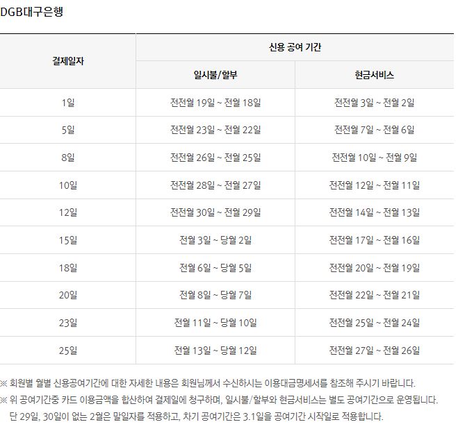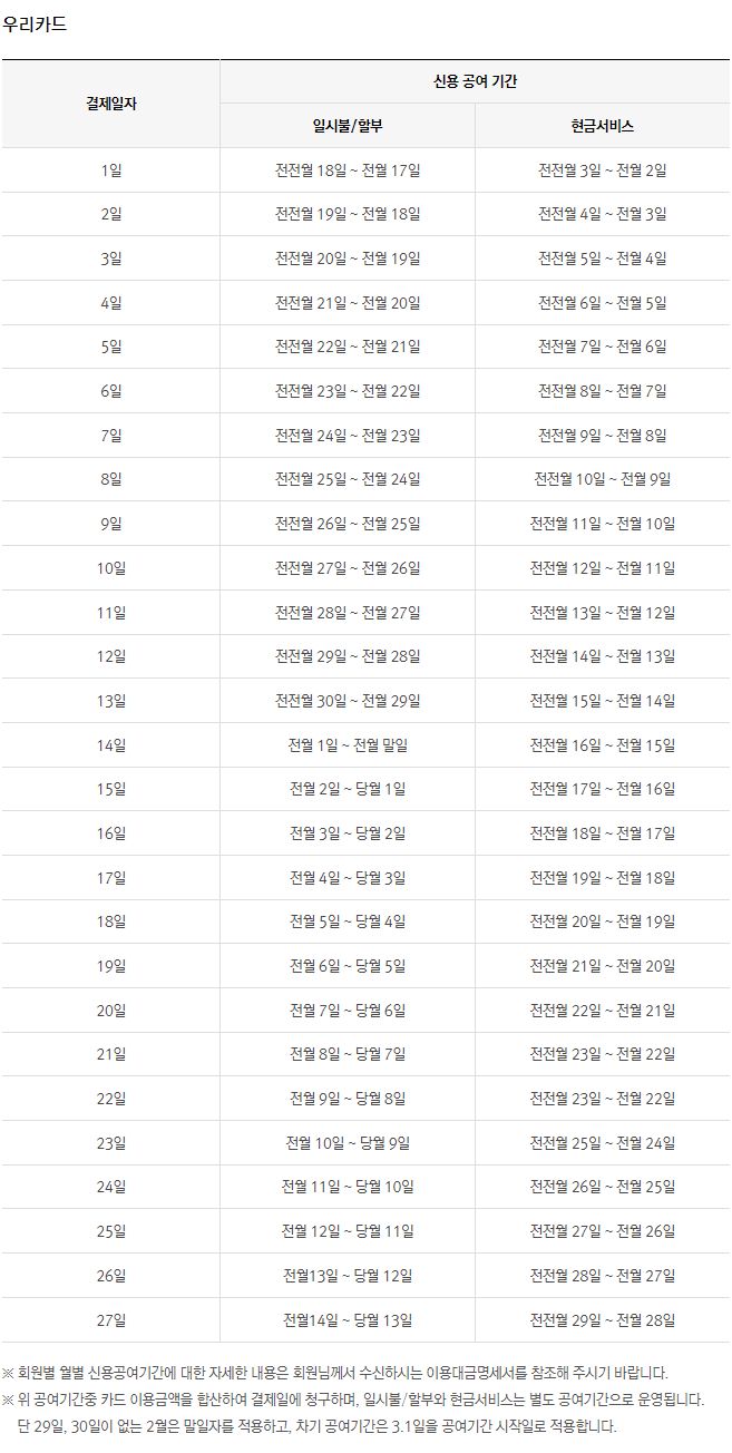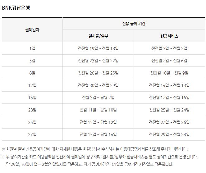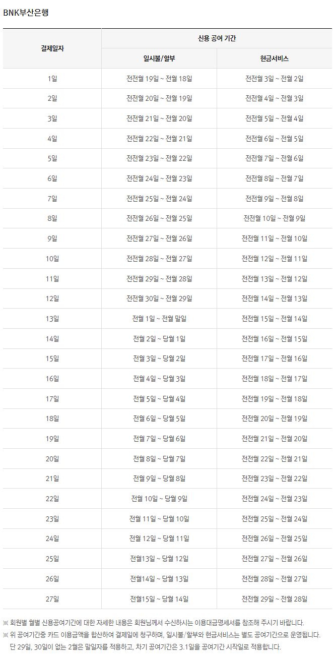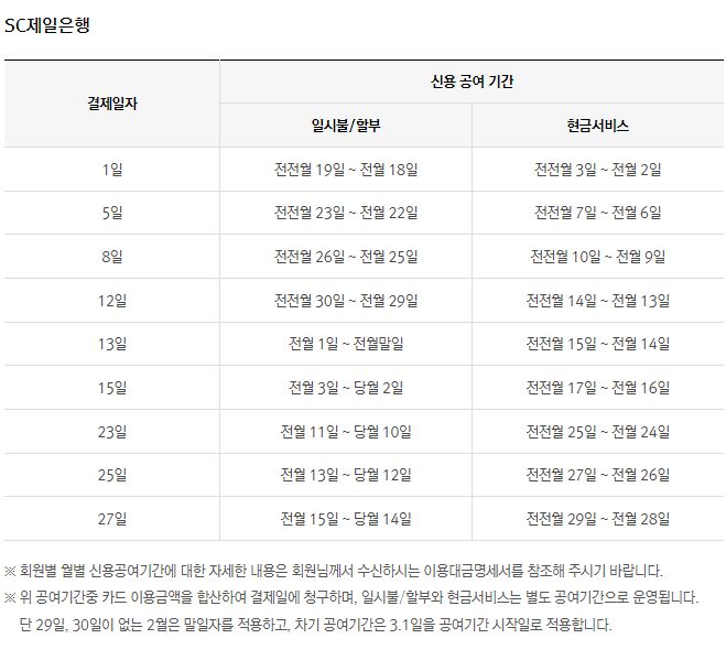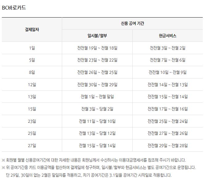 BC카드, 각 금융기관 결제일자별 신용공여기간 (2023.4) 본문