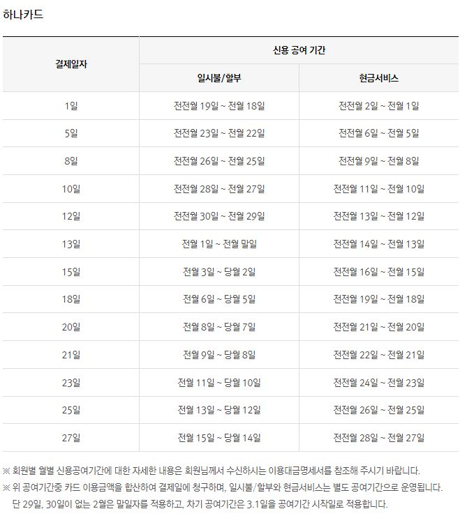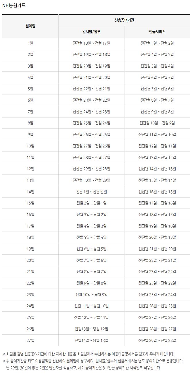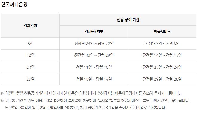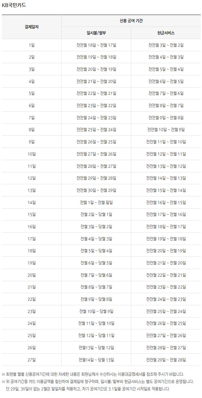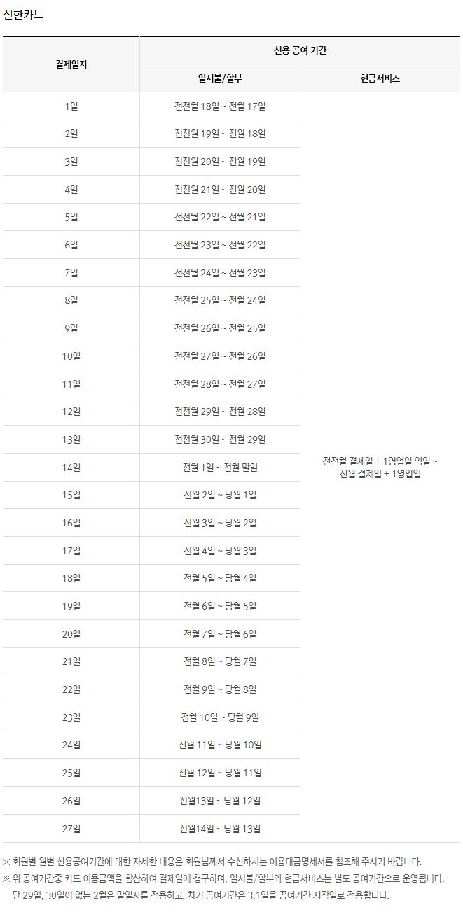 BC카드, 각 금융기관 결제일자별 신용공여기간 (2023.4) 본문